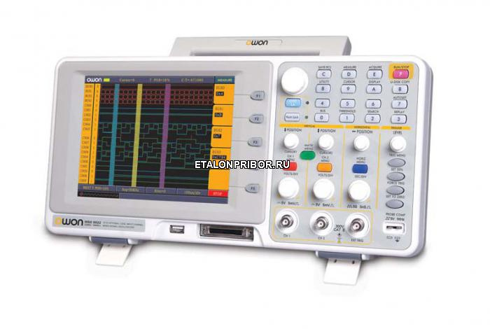 Цифровой осциллограф Owon MSO5022S имеет большой 20см цветной жидкокристаллический дисплей с разрешением 640x480 точек, а также небольшие габаритные размеры 350 × 157 × 120 мм и вес около 1кг.