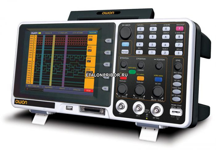 Осциллограф Owon MSO7102T имеет глубину памяти по 6Кб на канал, функцию автоматического выбора настоек, функцию усреднения и пикового детектора при регистрации, внешние интерфейсы RS232 и USB.