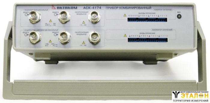 Комбинированный прибор АСК-4174 объединяет в себе 4 различных виртуальных прибора (двухканальный цифровой запоминающий осциллограф, двухканальный генератор сигналов произвольной формы, 16-канальный логический анализатор, 16-канальный генератор цифровых последовательностей) и предназначен для комплексного исследования многофункциональных аналогово-цифровых электронных устройств.