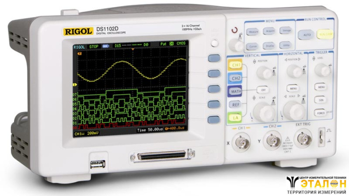 Двухканальный цифровой осциллограф смешанных сигналов Rigol DS1102D - это бюджетный осциллограф начального уровня. В цифровом осциллографе Rigol DS1102D имеется базовый набор функциональных возможностей, таких как курсорные измерения, автоматические измерения, математические функции, функция анализатора спектра на основе БПФ, тестирование "годен/не годен" и др., что позволяет рекомендовать цифровой осциллограф Rigol DS1102D радиолюбителям, студентам, образовательным учреждениям и организациям с ограниченным бюджетом. Наличие в цифровом осциллографе Rigol DS1102D встроенного шестнадцатиканального логического анализатора позволяет пользователям исследовать не только аналоговые, но и цифровые сигналы.