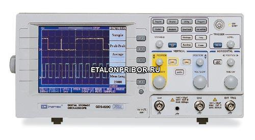 Цифровой осциллограф GDS-820С: Полоса пропускания 150 МГц; 2 канала; Коэффициент отклонения 2 мВ … 5 В / дел; Коэффициент развертки 1 нс … 10 с / дел; Частота дискретизации 100 Мвыб/с (эквив. до 25 Гвыб/с); Длина записи 125 К на канал; Маркерные и авто измерения (15 параметров); Частотомер 10 Гц … 100 МГц; Функция БПФ; Пиковый детектор (10 нс); Глубокая память (2 осциллограммы, 15 профилей); Выделение ТВ строки (PAL/ SECAM/ NTSC); Генератор калибровочного сигнала 1 … 100 кГц (скважность 5 … 95%); Цветной ЖК-дисплей (320 х 240); Интерфейсы: RS-232 - USB + LPT + Годен/не годен; Опция GPIB; Масса 4,1 кг.