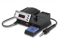 Антистатическая микропроцессорная одноканальная станция Dig2000A-Tech, мощностью 80Вт 220В/24В с цифровой регулировкой температуры в диапазоне 50-450°C; высокоскоростной универсальный паяльник TechTool (60Вт) c ультрамалоинерционным керамическим нагревателем и быстросъемными паяльными жалами серии 612; антистатическая подставка A42 с контейнером A08MSET стружки для сухой чистки паяльных жал.