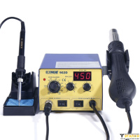 Спецификация Потребляемая мощность: 700Вт Температура паяльника: 200-450°C Температура фена: 100-450°C Тип воздушного потока: Круговая крыльчатка Объем воздушого потока: 120л/мин (max) Сопротивление паяльника: 15 Ом Сопротивление фена: 74 Ом Особенности Управляется микроконтроллером от Samsung Быстрый нагрев 3 насадки фена: большая, средняя, маленькая Автоматическая остановка при температуре 70 и ниже Материал высокого качества для длительного срока службы Безопасная пайка QFP, PLCC, BGA и других температурно-чувствительных компонентов