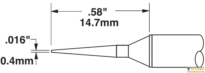 Metcal CVC-5CN1504A (замена STTC-545). Паяльное жало для СV/MX конус удлиненный 0.4 × 14.7 мм