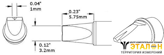 Основные технические характеристики CVC-7VG0032P Картридж-наконечник для СV/MX, клин с выемкой, 3.2х5.75мм METCAL