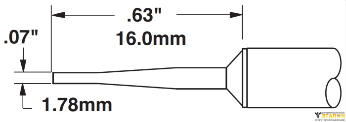 Основные технические характеристики CVC-8CH0018A Картридж-наконечник для СV/MX, клин удлиненный 60° 1.78х16.0мм (замена STTC-842V1) METCAL