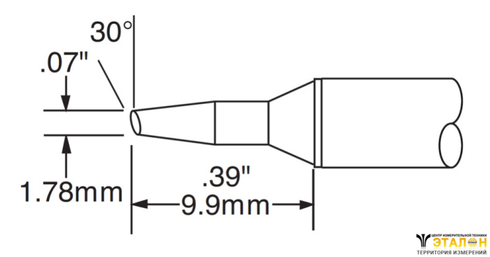 Metcal STTC-035. Паяльное жало для MX скос 30° 1.78 × 9.9 мм