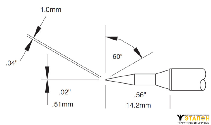 Metcal STTC-046. Паяльное жало для MX скос 60° удлиненное 1.00 × 14.2 мм