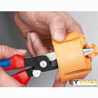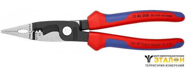 KNIPEX KN-1382200 электромонтажные клещи для захвата плоского и круглого материала, гибки, удаления заусенцев, резки кабеля, удаления изоляции и опрессовки контактных гильз.