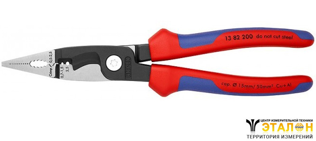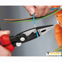 KNIPEX KN-1382200SB электромонтажные клещи для захвата плоского и круглого материала, гибки, удаления заусенцев, резки кабеля, удаления изоляции и опрессовки контактных гильз.