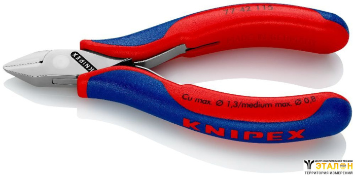 KNIPEX KN-7742115 бокорезы диагонального типа для резки жёсткого провода. Подходят для требующих высокой точности и аккуратности работ в сфере электроники.