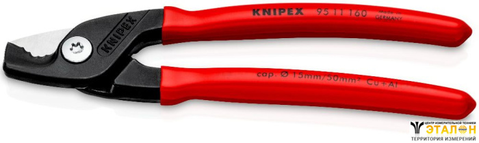 KNIPEX KN-9511160 кабелерезы предназначены как для удаления защитной изоляции, так и для резки одножильных и многожильных алюминиевых и медных кабелей.