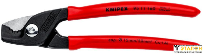 KNIPEX KN-9511160 кабелерезы предназначены как для удаления защитной изоляции, так и для резки одножильных и многожильных алюминиевых и медных кабелей.