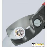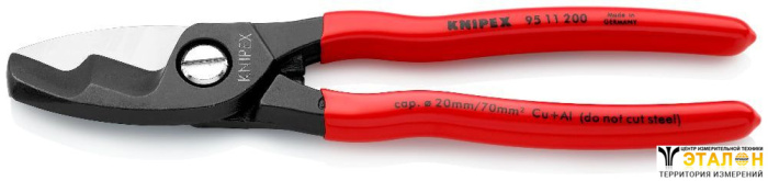 KNIPEX KN-9511200 кабелерезы предназначены как для удаления защитной изоляции, так и для резки одножильных и многожильных алюминиевых и медных кабелей.