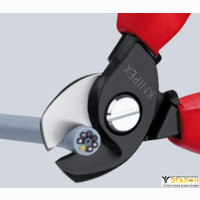 KNIPEX KN-9512165TBK кабелерезы предназначены как для удаления защитной изоляции, так и для резки одножильных и многожильных алюминиевых и медных кабелей.
