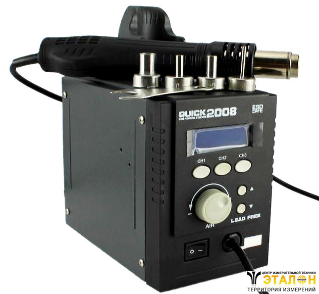 Термовоздушная паяльная станция QUICK 2008 предназначена для пайки и демонтажа большинства компонентов поверхностного монтажа: SOIC, CHIP, QFP, PLCC, BGA и т.п.