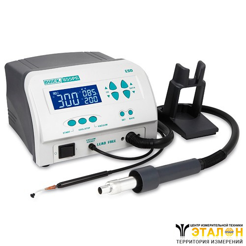 Устройство Quick-855PG производит нагрев горячего воздуха в замкнутом или открытом объеме для монтажа микросхем, чувствительных к стабильности температуры пайки. Станция предназначена для пайки и демонтажа большинства компонентов поверхностного монтажа: SOIC, CHIP, QFP, PLCC, BGA.