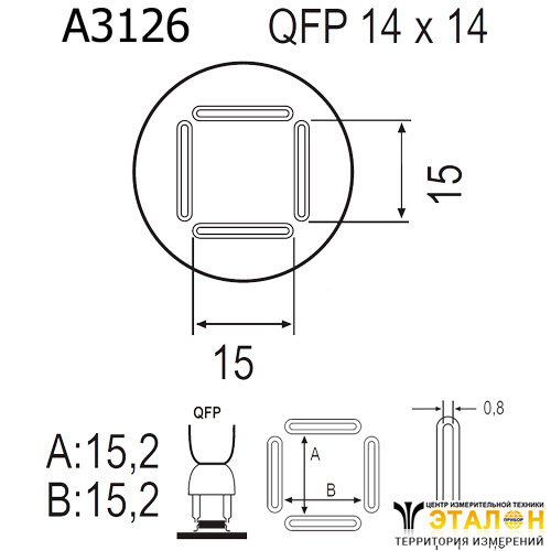 Квадрат: 15,2 х 15,2 (мм). Для выпаивания корпуса микросхемы типа QFP 14x14, материал: титановый сплав. Насадка паяльная A-3126 используется в паяльных станциях серий Quick 856, Quick 858, Quick 2008, Quick 997, Quick 861DA.