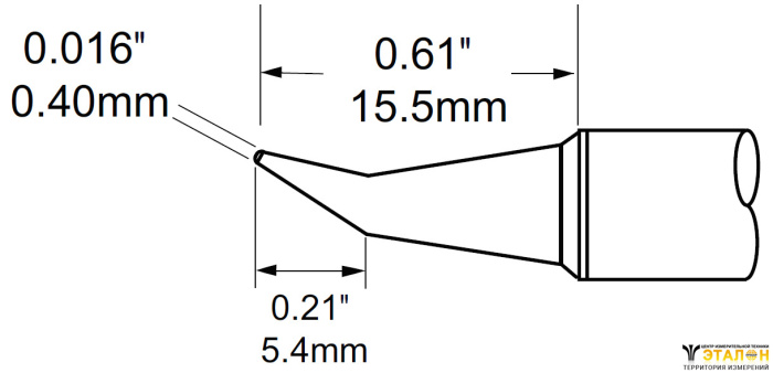 Основные технические характеристики STV-CNB04A Наконечник для PS900, конус изогнутый 0.4х15.5мм METCAL