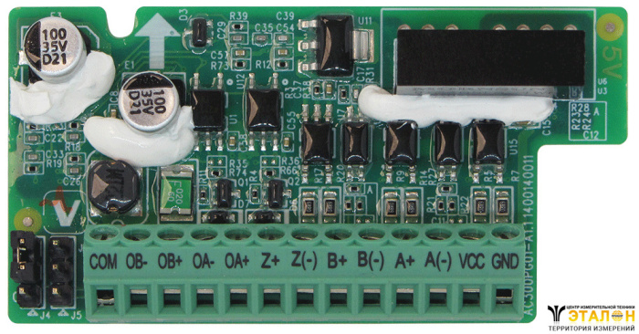 Энкодерная плата ПЭ2 предназначена для подключения инкрементального HTL-энкодера с частотой дифференциального сигнала до 500 кГц. Имеет встроенный источник питания 12 В Плата предназначена для работы с ПЧВ3 [M01].