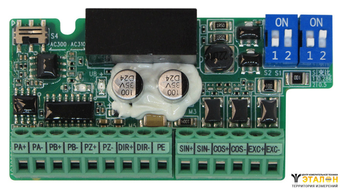 Плата ПРЕ1 предназначена для подключения резольверов в качестве обратной связи по скорости. Дополнительно плата оснащена эмулятором выходного сигнала квадратурного энкодера с дифференциальным выходом. Плата предназначена для работы с ПЧВ3 [M01].
