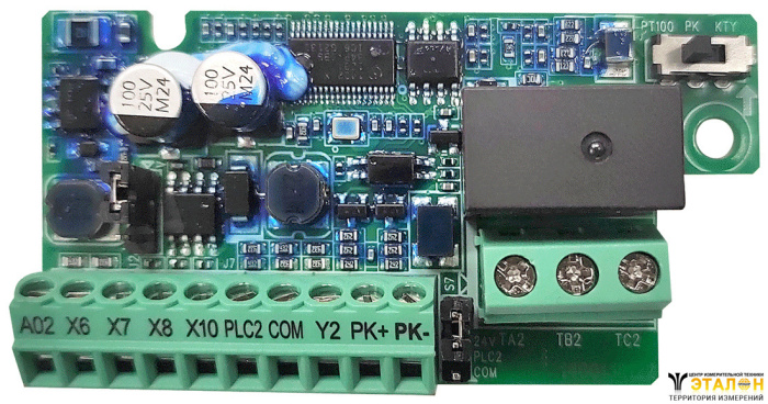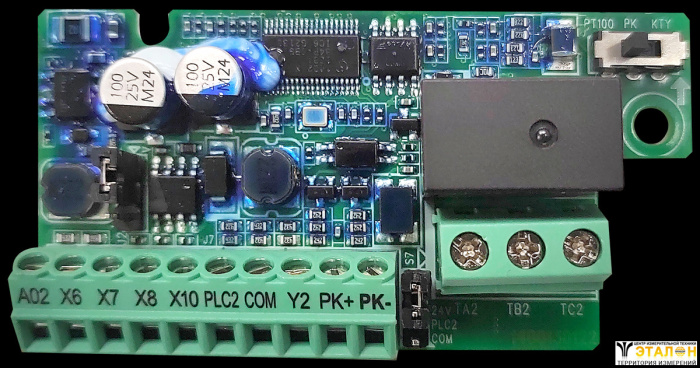 Плата ПВВ1 позволяет увеличить штатные входы/выходы ПЧВ на 1 аналоговый выход, 4 цифровых входа, 1 релейный выход, 1 цифровой выход, 1 вход датчика PT100/PT1000/KTY. Плата предназначена для работы с ПЧВ3 [M01].