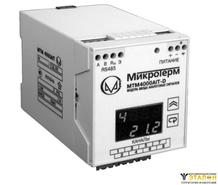 8-канальный модуль ввода аналоговых сигналов МТМ4000AIT, МТМ4000AIT-D предназначен для преобразования сигналов стандартных термоэлектрических преобразователей (ТП), сигналов постоянного тока и напряжения в цифровой код, передаваемый по интерфейсу RS485.