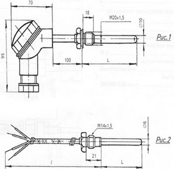 Рис.1. Габаритный чертеж термопреобразователя ТСПР-0490
