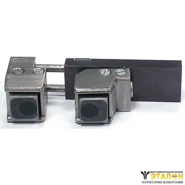 Устройство для УЗК нахлесточных сварных соединений, состоящее из двух ультразвуковых преобразователей П121 - 5 - 45° и механического приспособления, имеющего направляющую и фиксирующий винт. Реализуемые методы УЗК: зеркально-теневой, эхо. Методика согласована с Ростехнадзором РФ.