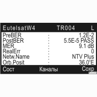 | Время непрерывной работы прибора в нормальных условиях от аккумулятора емкостью 1300 мАч и токе LNB 150 мА | не менее 1 часа |