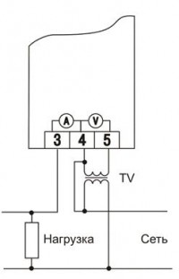 Подключение прибора к однофазной сети через согласующие трансформаторы тока и напряжения