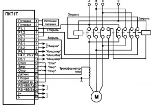 ПКП1Т – прибор предназначен для управления и контроля положением задвижки по времени ее перемещения и току, потребляемому электродвигателем. Схему подключения прибора можно посмотреть здесь.