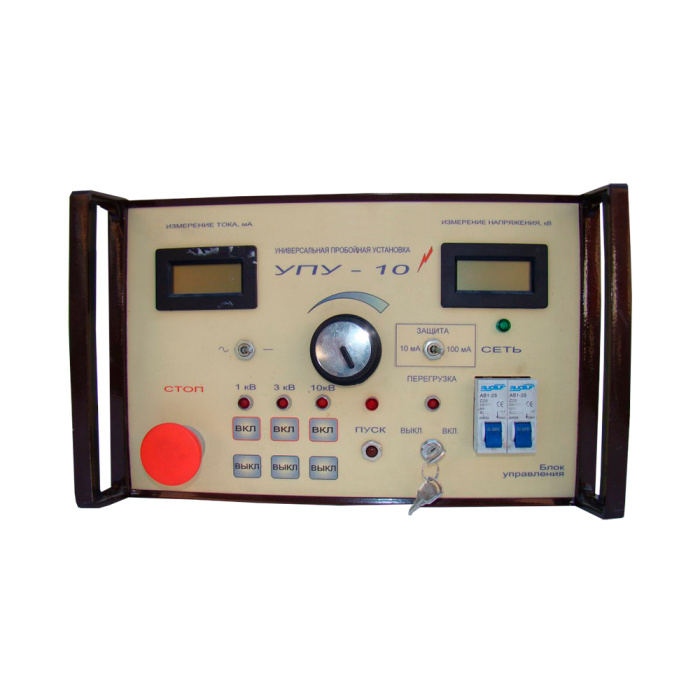 1.1 Установка пробойная универсальная УПУ-10 (в дальнейшем по тексту – УПУ-10) предназначена для испытания изоляции электротехнического оборудования и материалов переменным синусоидальным напряжением частотой 50 Гц и выпрямленным напряжением отрицательной полярности, регулируемым в пределах 0-10 кВ с выходным током до 100 мА