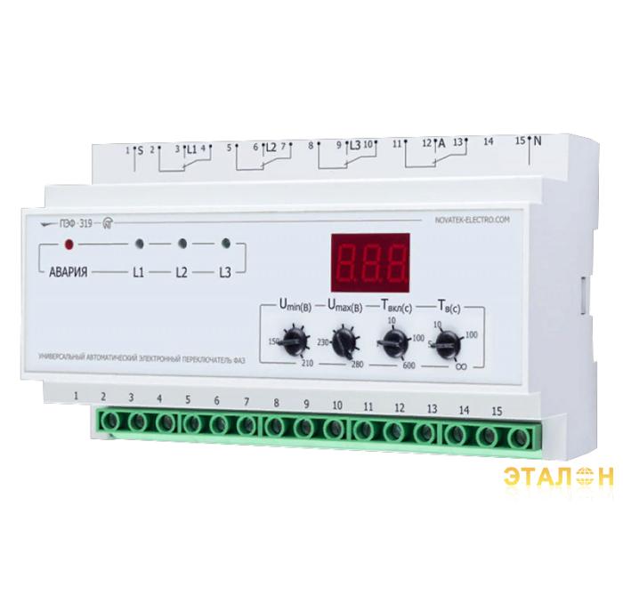Автоматический переключатель фаз ПЭФ 319 выбирает фазу, параметры которой находятся в пределах нормы. Благодаря встроенному микроконтроллеру ПЭФ 319 анализирует состояние энергосети и отображает полученные сведения на индикаторе. При этом, потребитель может даже не заметить, что на линии произошел обрыв.