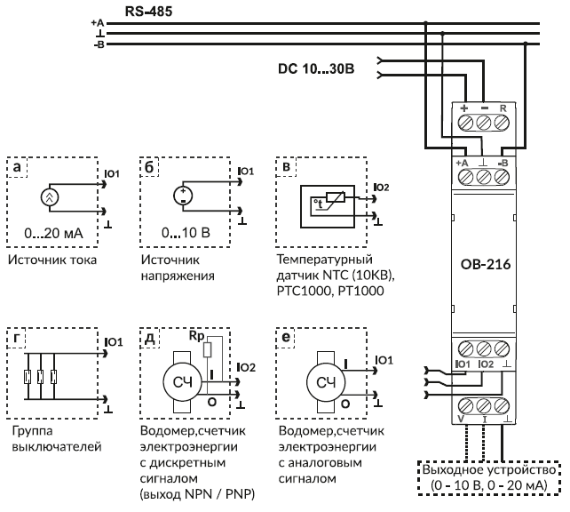 Модуль ввода-вывода одноканальный, 4 режима работы, 5 типов датчиков, Modbus (выходной сигнал 0-10В, 4-20мА), TTL - Modbus конвертер