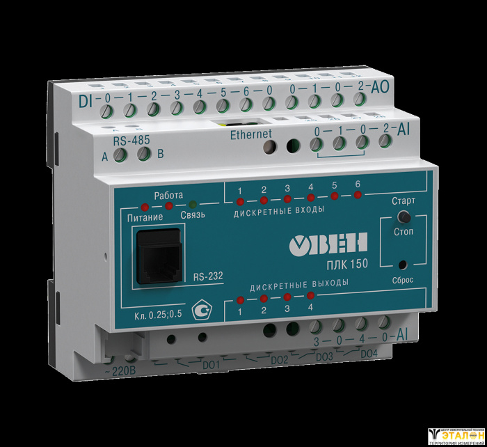 ОВЕН ПЛК150 – моноблочный контроллер с дискретными и аналоговыми входами/выходами на борту для автоматизации малых систем