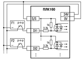 Подключение к дискретным входам датчиков (F1–Fn), имеющих на выходе транзисторный ключ p-n-p–типа