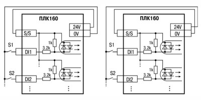 Схема подключения контактных датчиков (S1–Sn) к входам контроллера