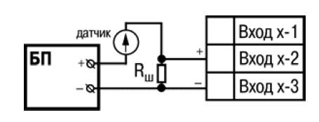 Подключение активного датчика с токовым выходом 0...5 мА или 0(4)...20 мА (Rш = 100,0 Ом ± 0,1%)