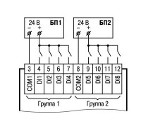 Подключение дискретных датчиков =24 В с выходом типа «сухой контакт» (для модификаций ПР200-24, ПР200-220.2Х)