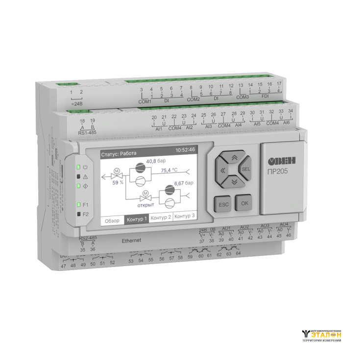 ПР205 – новое программируемое реле с графическим дисплеем и Ethernet. Прибор сочетает в себе оптимальную конфигурацию аналоговых и дискретных входов/выходов для управления системами вентиляции, отопления, кондиционирования и др. При необходимости количество входов/выходов можно увеличить с помощью модулей расширения ПРМ.