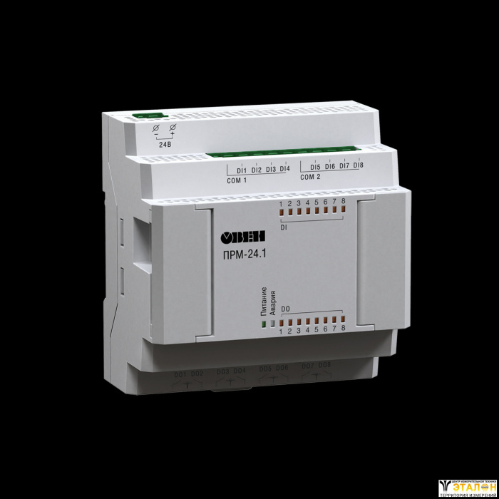 Подключение модулей осуществляется по внутренней шине. Кабель для подключения входит в комплект поставки ПРМ. К ПР можно подключить до двух модулей расширения ввода/вывода. Модули имеют свое независимое питание, что повышает надежность системы. Выпускаются две модификации по питанию: 230 В и 24 В, причем можно использовать ПР и модули ПРМ с разным типом питания.