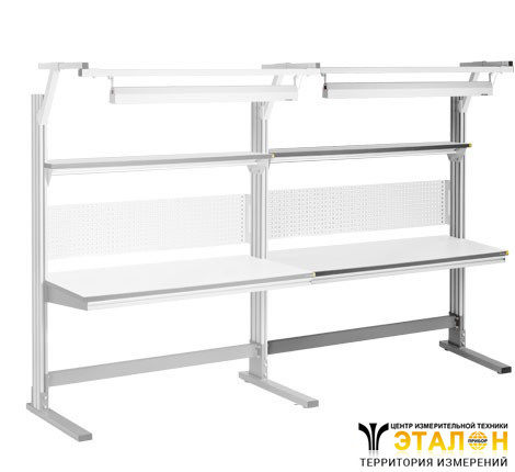 Стол комплекта АЛ/Д-15-7 ESD является приставным к основному столу серии АЛЬЯНС, позволяя создавать непрерывное рабочее пространство из основного и одного/нескольких дополнительных столов. Установка дополнительного стола осуществляется посредством его крепления к основному столу АЛЬЯНС справа или слева и к входящей в комплект 1 боковой алюминиевой стойке с противоположной стороны. Комплект поставки: стол с 1 боковой стойкой, перфорированная панель,нижняя планка, полка для оборудования и светильник (или светодиодный светильник). Максимальная нагрузка – 200 кг. Антистатическое исполнение.