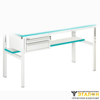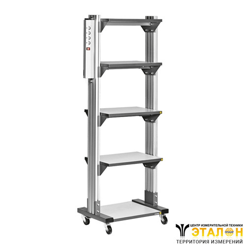 Оборудована пятью полками, свободно регулируемыми по высоте, и электромонтажной панелью (1/2 ЭПА-12) с 4 розетками и выключателем. Панель располагается сбоку, что позволяет эффективно использовать верхнюю полку. Изготовлена из алюминиевого профиля с порошковым покрытием.