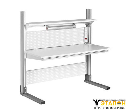 Общая высота стола 1500 мм. Максимальная нагрузка на столешницу - до 200 кг. В стандартной комплектации поставляются с 2 перфопанелями. Антистатическое исполнение.