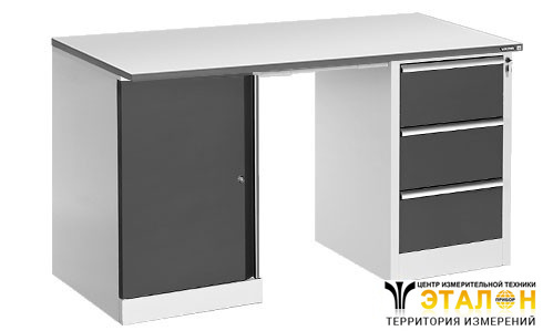 Стол рабочий КОНСТАНТ CP-15+ТМБ-01+ДР-03 ESD, антистатическое исполнение укомплектован тумбой с дверцей ТМБ-01 ESD и драйвером с 3 ящиками ДР-03/1 ESD.