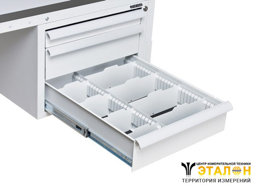 Системы разделителей для ящиков ДМ-11/Б дают возможность организовать внутреннее пространство ящика для удобства пользователя. Профильные поперечные металлические разделители позволяют создать требуемое количество ячеек разного размера для хранения и использования различающихся по размеру и предназначению элементов.