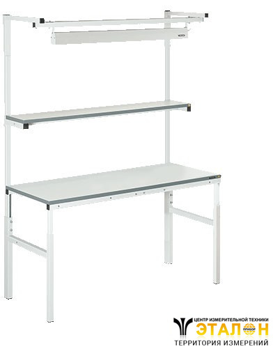 В комплект входит стол рабочий КЛАССИК, полка для оборудования 300 мм, освещение ДЛ/А со светильником. Столешница из материала устойчивого к истиранию. Максимальная нагрузка 300 кг на стол, 50 кг на полку. Высота регулировки столешницы 650 – 950 мм.