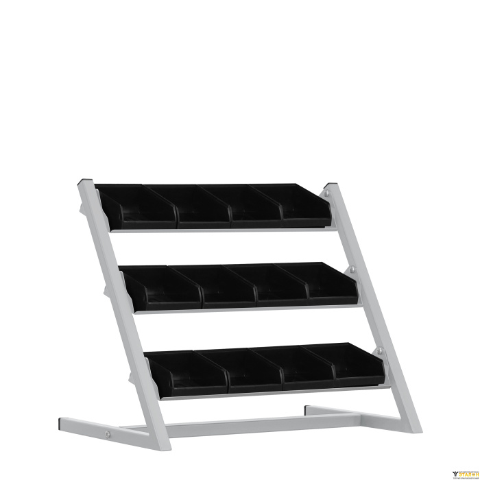 Настольная антистатическая система хранения имеет 12 лотков и используются для упорядоченного хранения мелких комплектующих требующих защиты от электростатического разряда. Так обеспечивается сохранение эксплуатационных свойств комплектующих и экономится пространство.