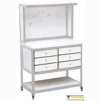 Подкатной столик АКТАКОМ АРМ-5153-9-ESD позволяет удобно расположить, а также перемещать приборы и другое оборудование по рабочей зоне и является практичным дополнением к рабочим столам АКТАКОМ серии АРМ-4ххх. Цвет алюминиевого каркаса - серый (RAL-9006), цвет ДСП - белый. Столешница выполнена из антистатического (ESD) меламинированного ДСП толщиной 25 мм.